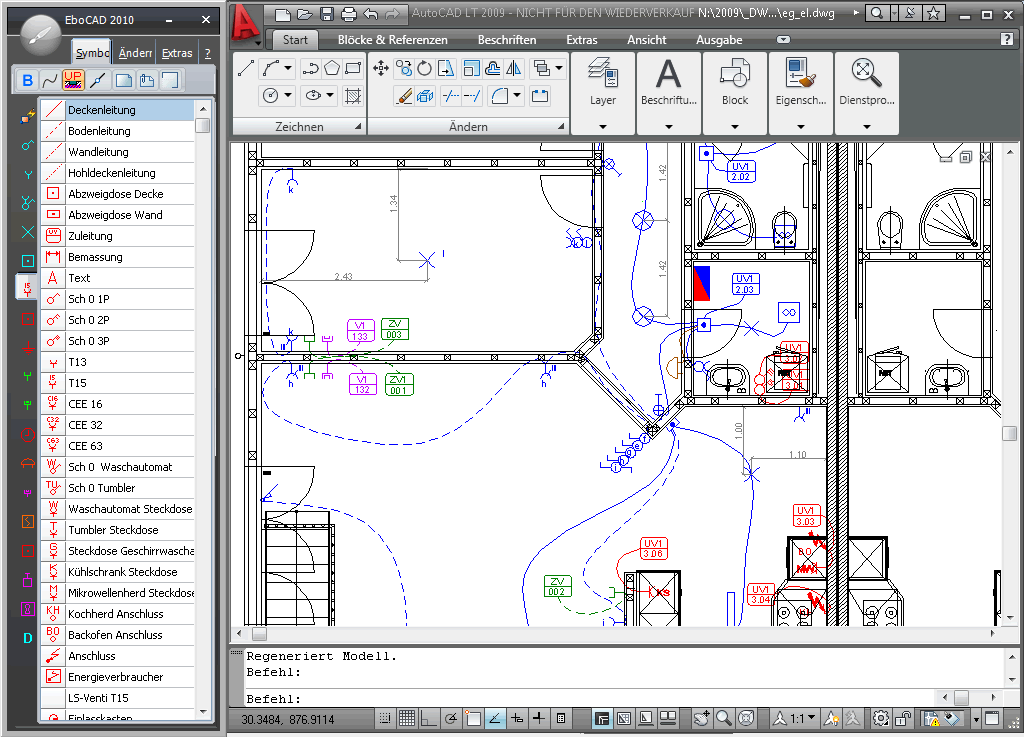 Dank EboCAD sind Sie in der Lage, AutoCAD & LT ohne lange Schulung zu nutzen. Nach einer kurzen Einführung können Sie Installationspläne und Schemas selbständig zeichnen.