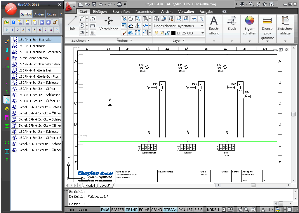 Mit EboCADs zeichnen Sie Ihre Schemas auf einfachste Weise, in kürzester Zeit und in höchster Qualität EboCADs + AutoCAD & LT, endlich CAD-Zeichnen ohne komplizierte Programmbedienung.