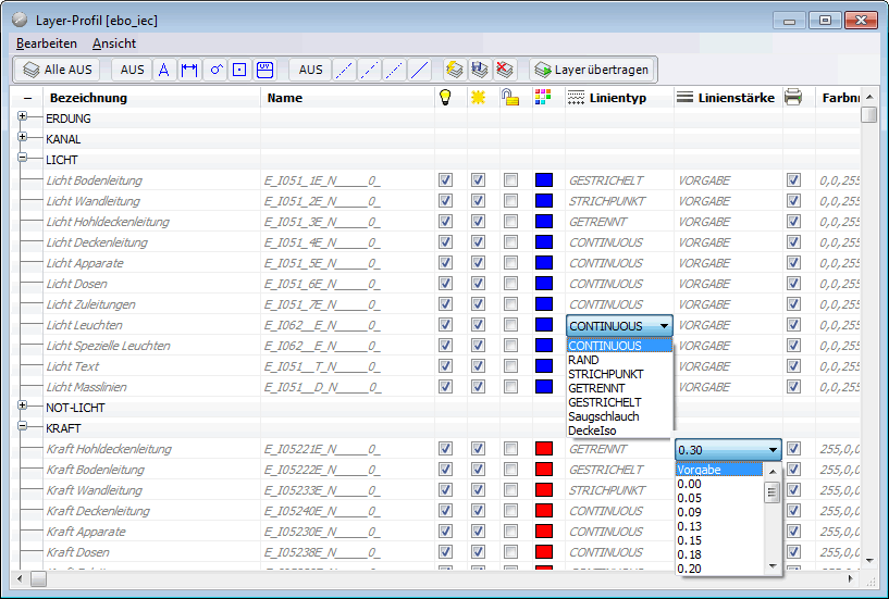 Der Layereigenschaften-Manager erleichtert das Verwalten, Editieren und Ergänzen der benutzerdefinierten Layerstrukturen.