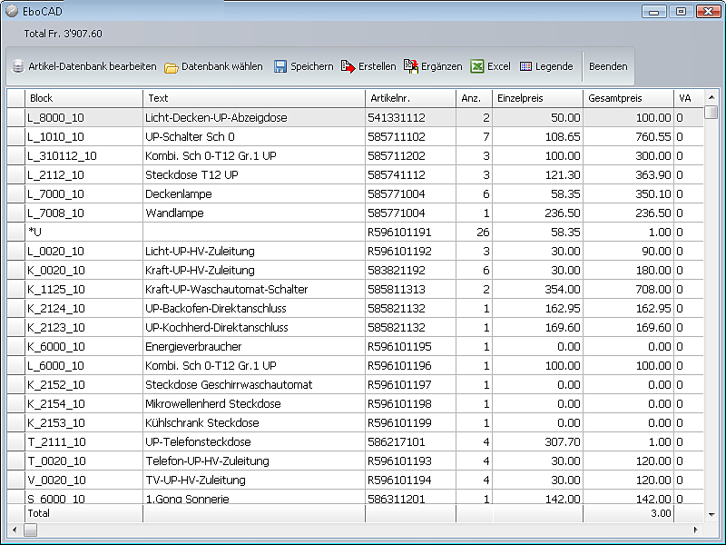 Mit EboCALK erstellen Sie auf einfachste Weise Offerten und Rechnungen ab AutoCAD & LT-Zeichnungen, unabhängig mit welcher Applikation oder Symbolbibliothek Sie die Zeichnung erstellt haben.